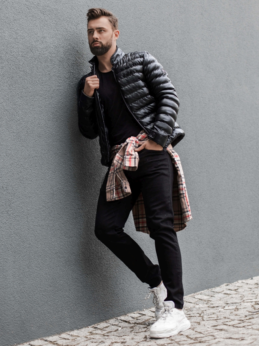 • Herren Lederjacke Schwarz OZONEE O/9025Z