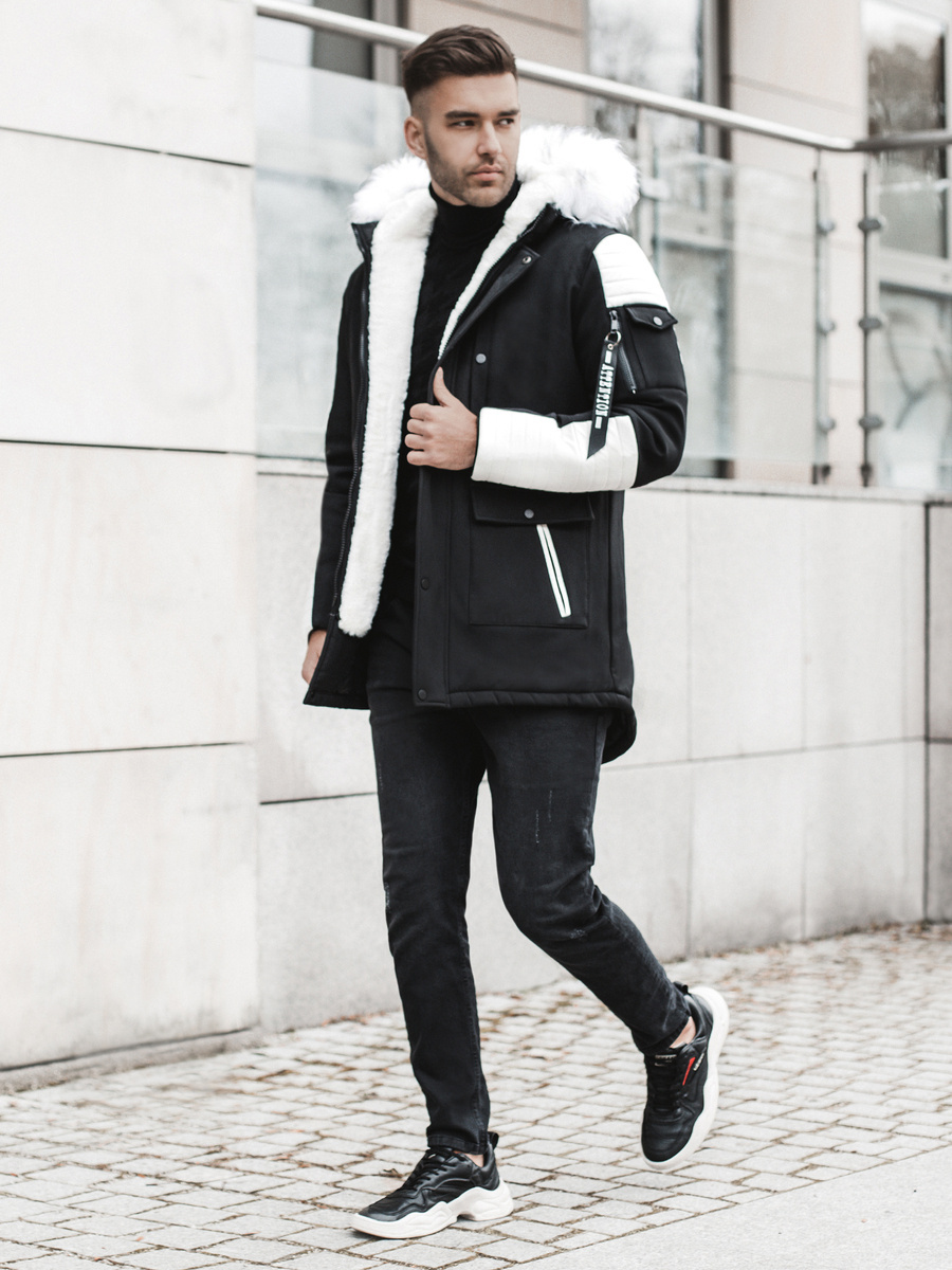 • Herren Winterjacke Schwarz-Weiß OZONEE O/5832Z