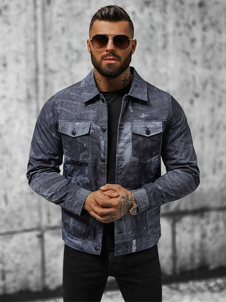 Herrenjacke, die eine Jeansjacke aus Denim imitiert