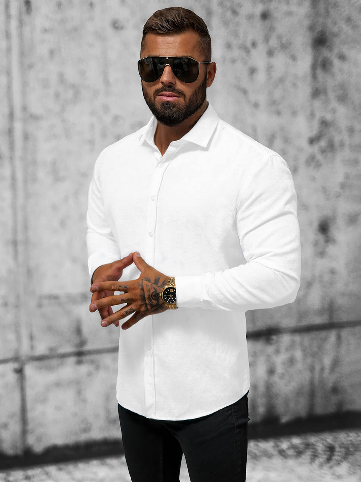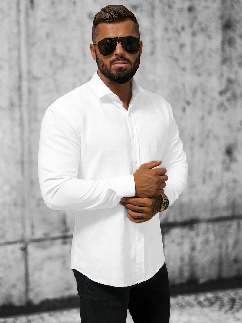 Das Model, das das Hemd zeigt, ist 182 cm groß, wiegt 87 kg und trägt Größe L. Das Ozonee O/3778 Herrenhemd ist eine gute Wahl für Männer, die klassischen Stil mit Tragekomfort kombinieren möchten.