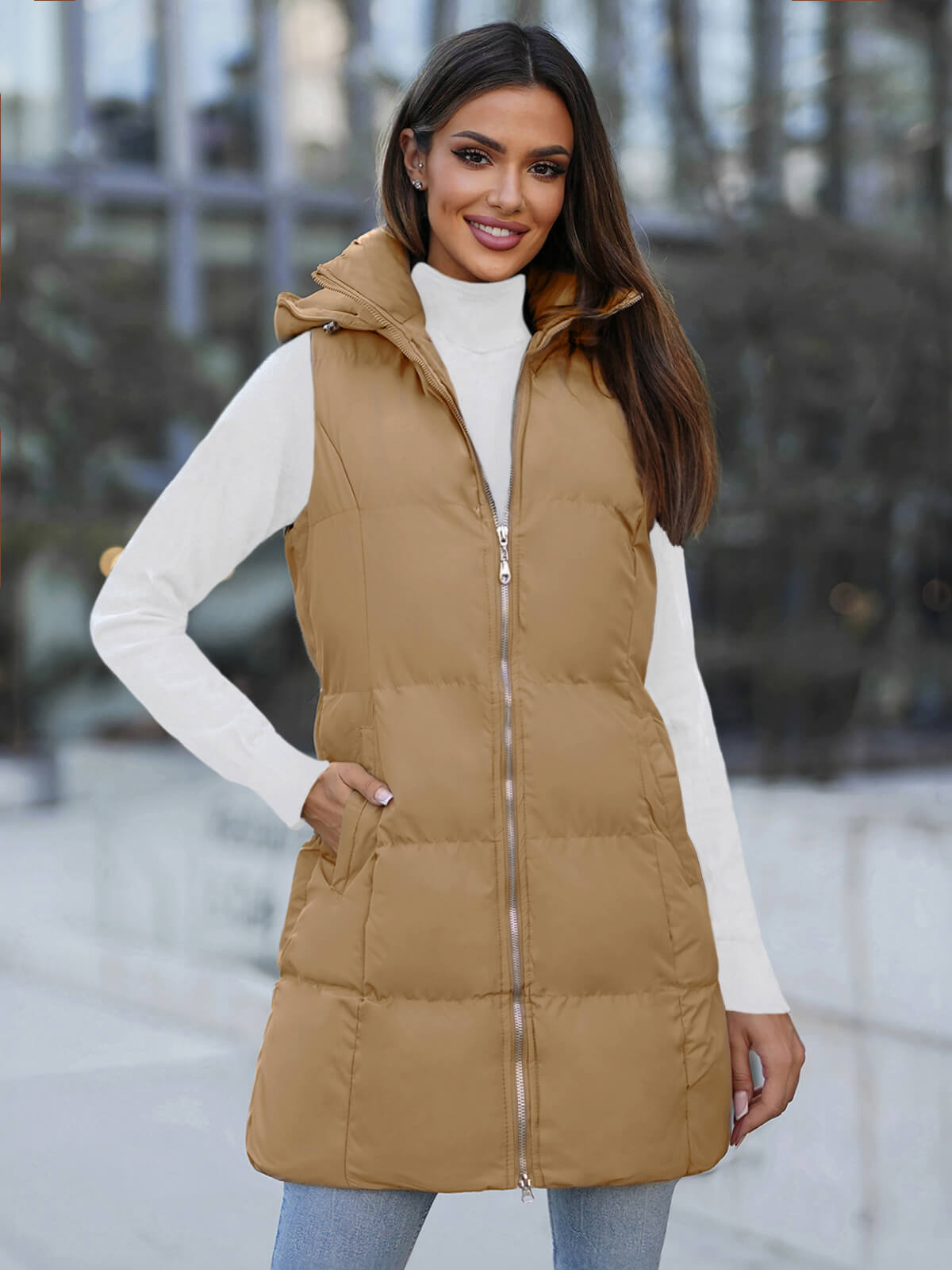 - Diese lange Weste aus 100% Polyester hat einen Reißverschluss und praktische Taschen an den Seiten für zusätzlichen Komfort