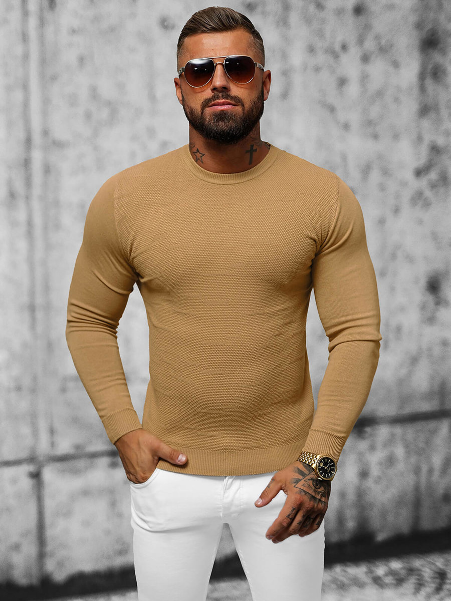 - Dieser modische Pullover mit erhabenem Muster hat einen Rundhalsausschnitt und elastische Ripp-Bündchen an Ärmeln und Saum für eine perfekte Passform
