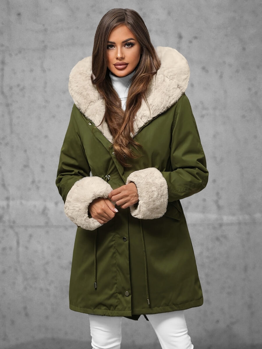 Lange Damen-Winterjacke mit Fell grün OZONEE JS/5M3187/136