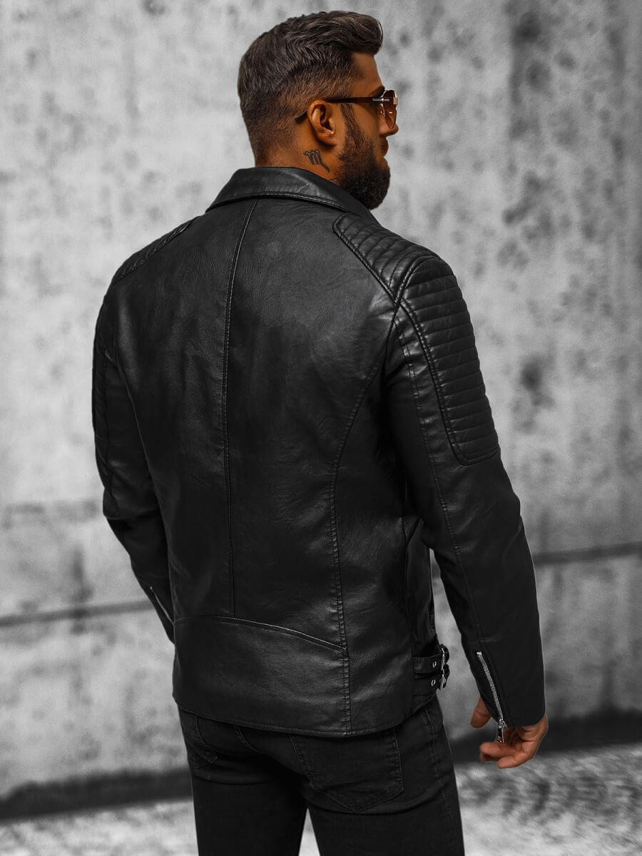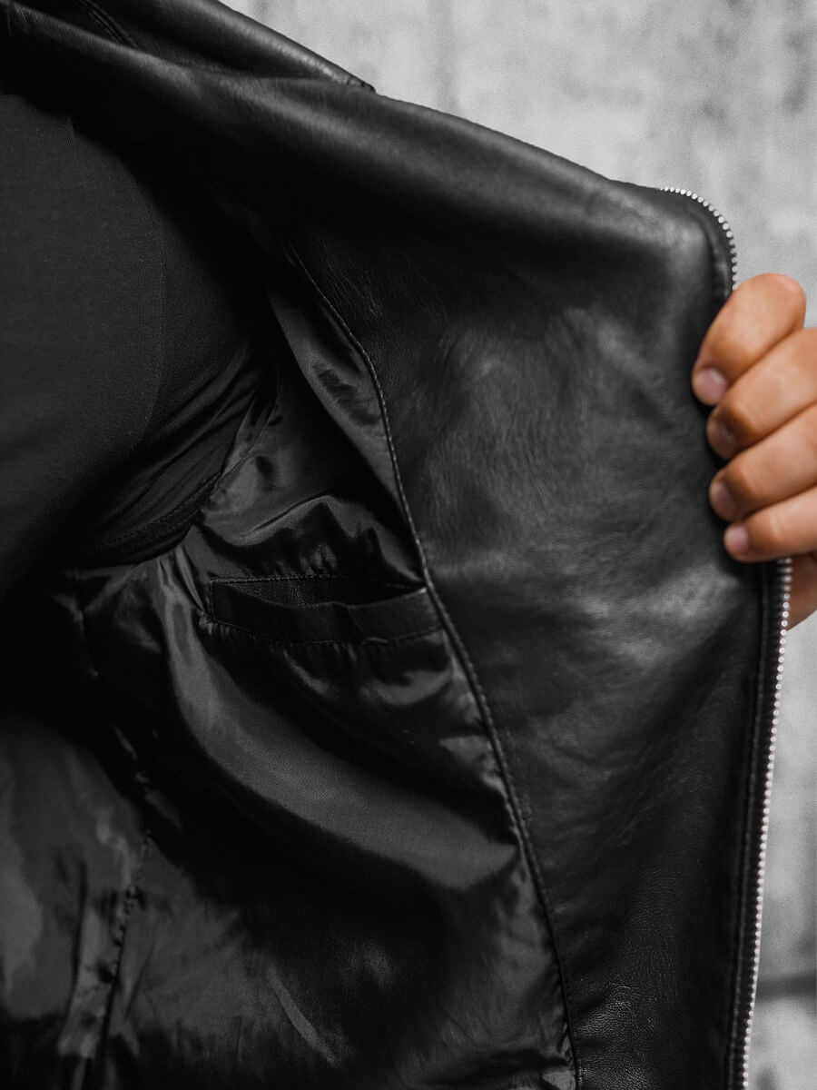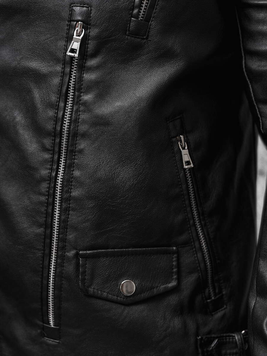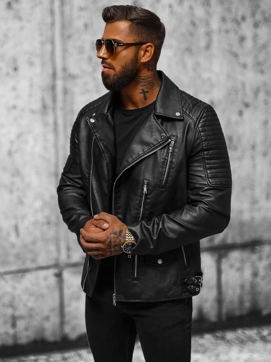 Diese Herrenjacke Ramoneska aus der aktuellen Kollektion von OZONEE ist die perfekte Wahl für Männer, die Stil und Komfort zu schätzen wissen. Die schwarze Jacke aus Öko-Leder mit Reißverschluss verfügt über seitliche und vordere Reißverschlusstaschen sowie eine Tasche in der Mitte, in der Sie Ihre wichtigsten Utensilien verstauen können. Das 182 cm große und 87 kg schwere Model trägt Größe XL, was die Vielseitigkeit dieses Produkts unterstreicht.