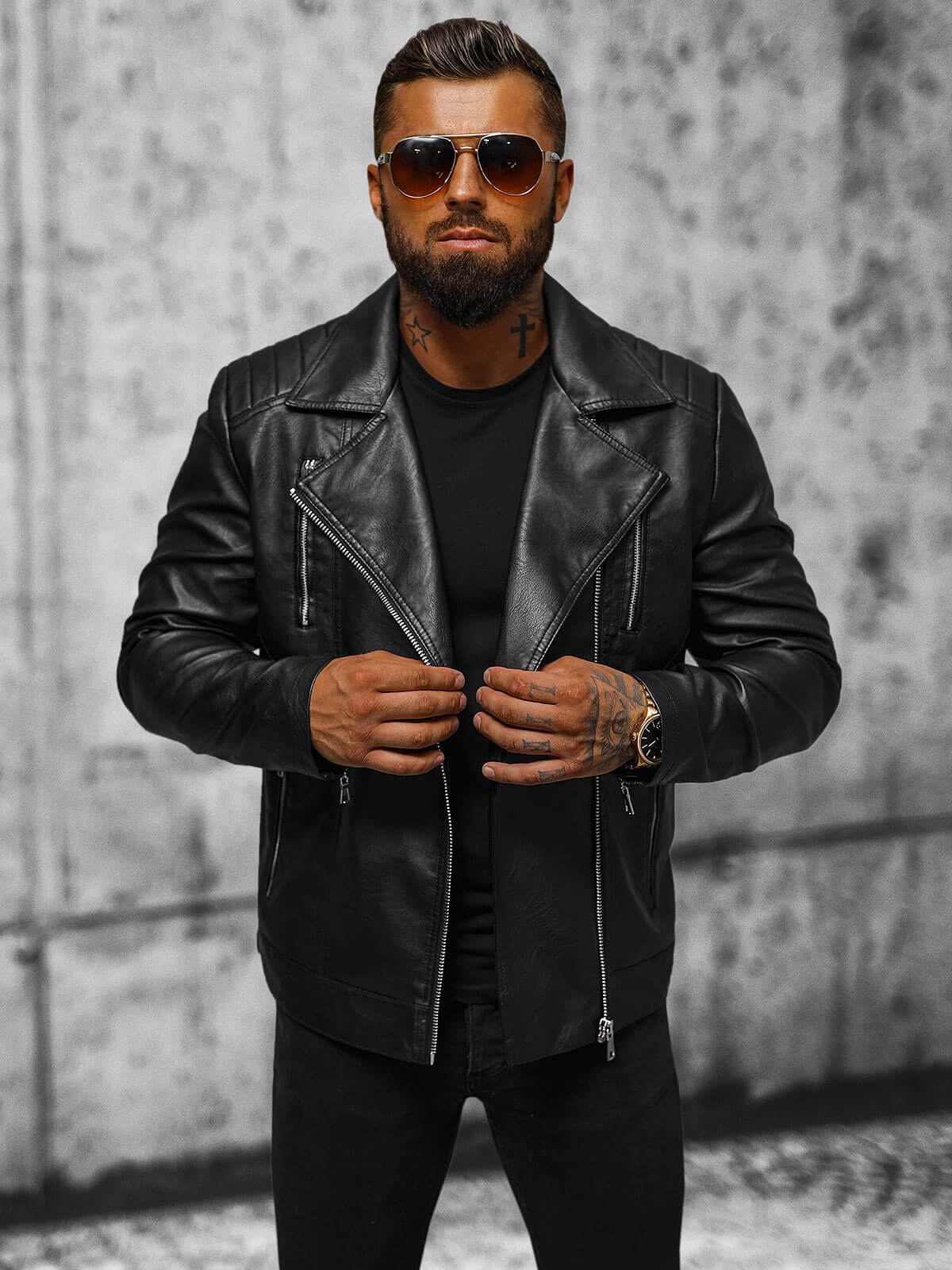 Die Herrenjacke Ramoneska aus der aktuellen Kollektion von OZONEE ist die perfekte Wahl für Männer, die Stil und Komfort zu schätzen wissen. Die schwarze Jacke aus Ökoleder und mit Reißverschluss ist ein äußerst modisches und vielseitiges Kleidungsstück.