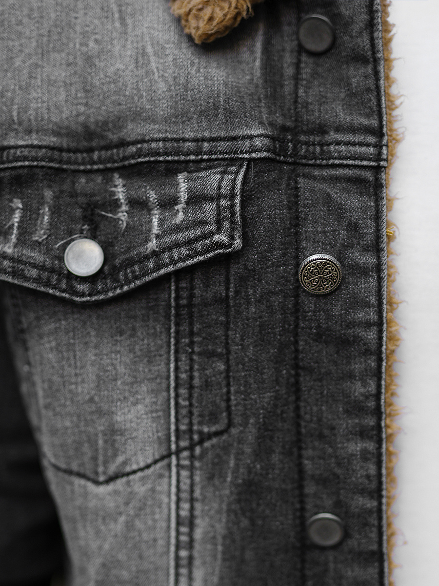 Sherpa-Jeansjacke für Herren schwarz OZONEE NB/MJ520NZ