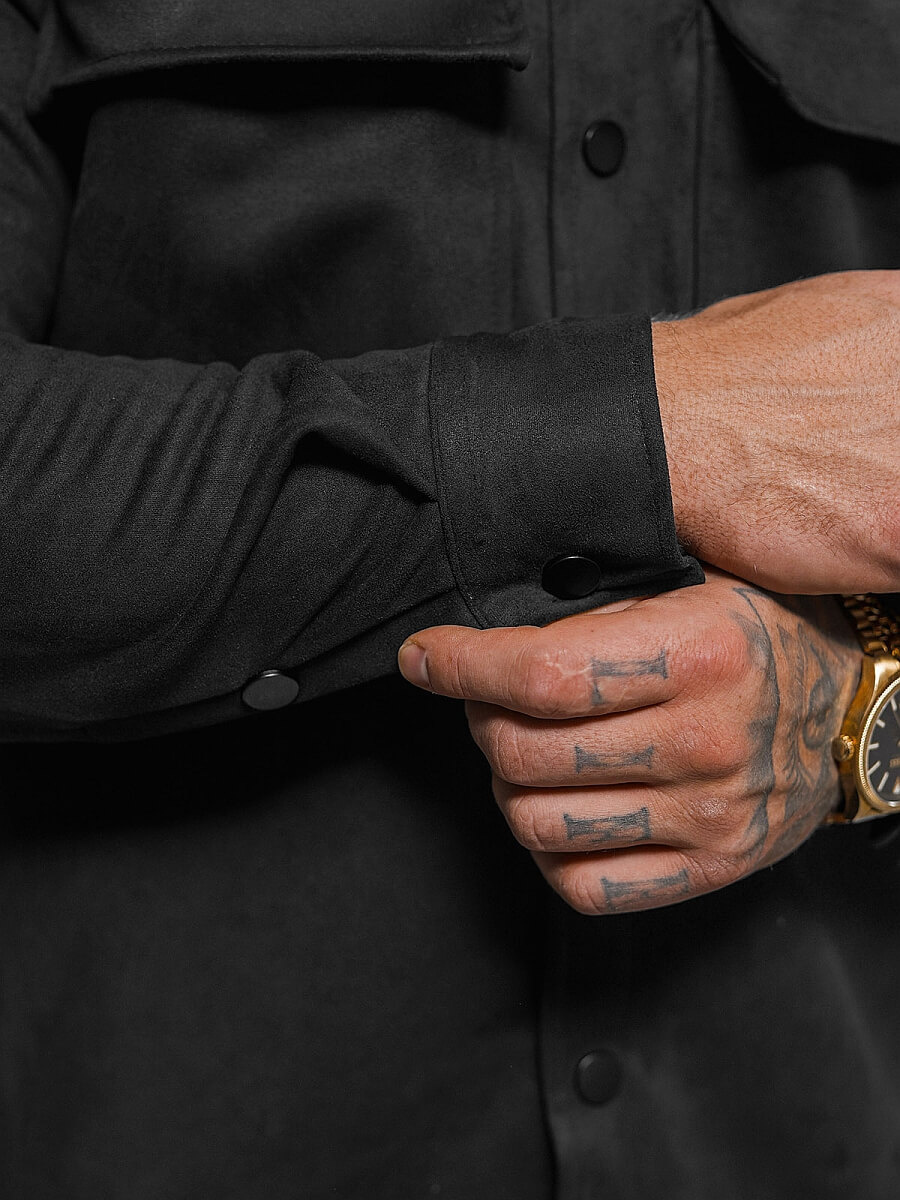 - Die Vorderseite verfügt über praktische Taschen und Druckknöpfe für einen klassischen Look