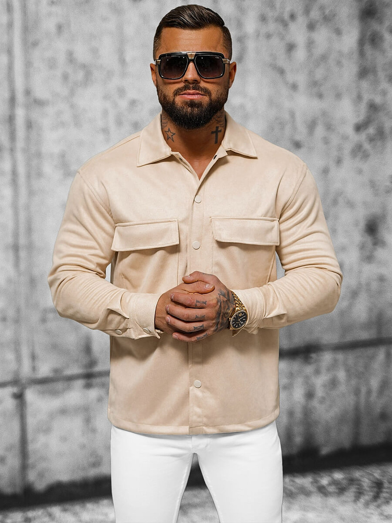 Außergewöhnlicher Stil und Komfort mit dem beigen OZONEE Herrenhemd O/GOM23039