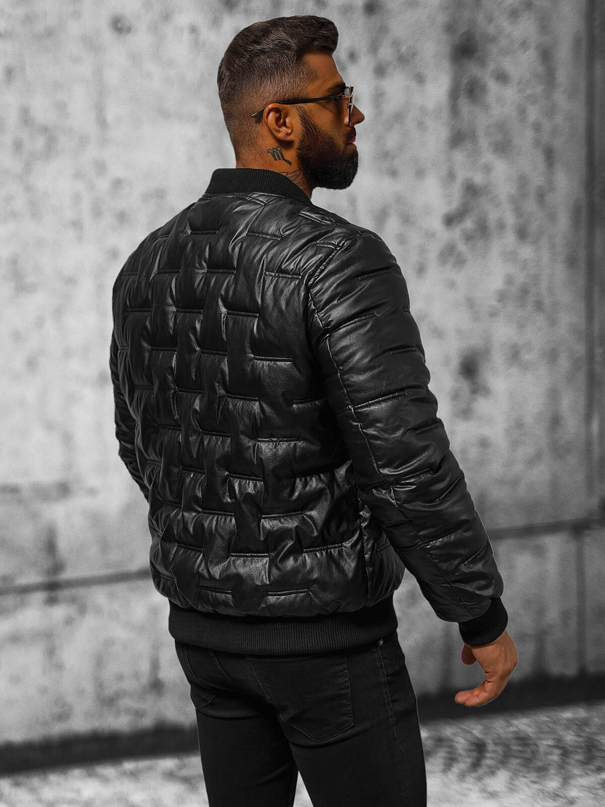 Herren Lederbomberjacke schwarz OZONEE O/11Z8099 - Eleganz trifft Praktikabilität