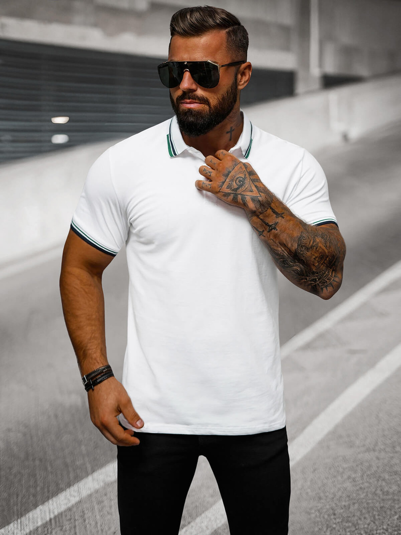 Eleganz und Komfort in einem - OZONEE weißes Herren-Poloshirt O/DA736