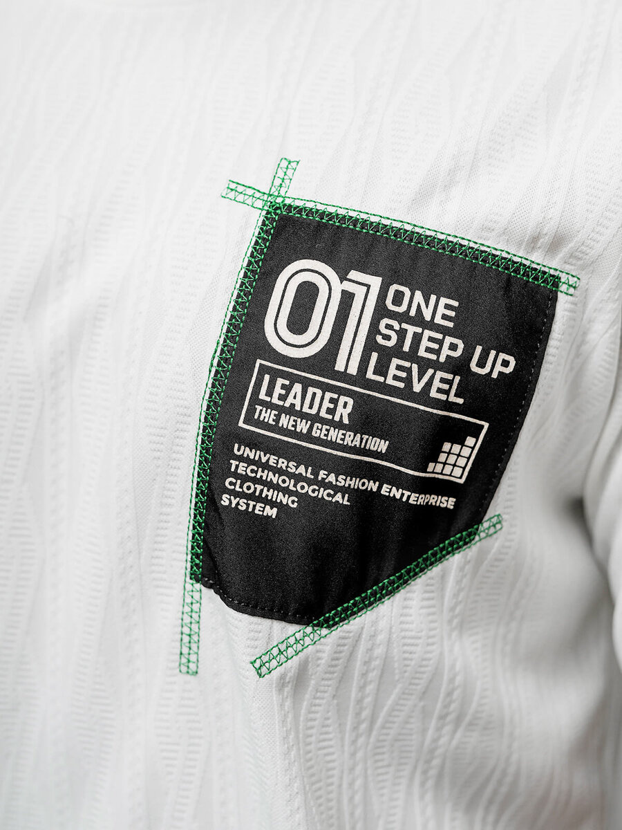 - Dieses modische T-Shirt aus Baumwollmischung hat eine Imitation einer Tasche und ein modisches, erhabenes Muster