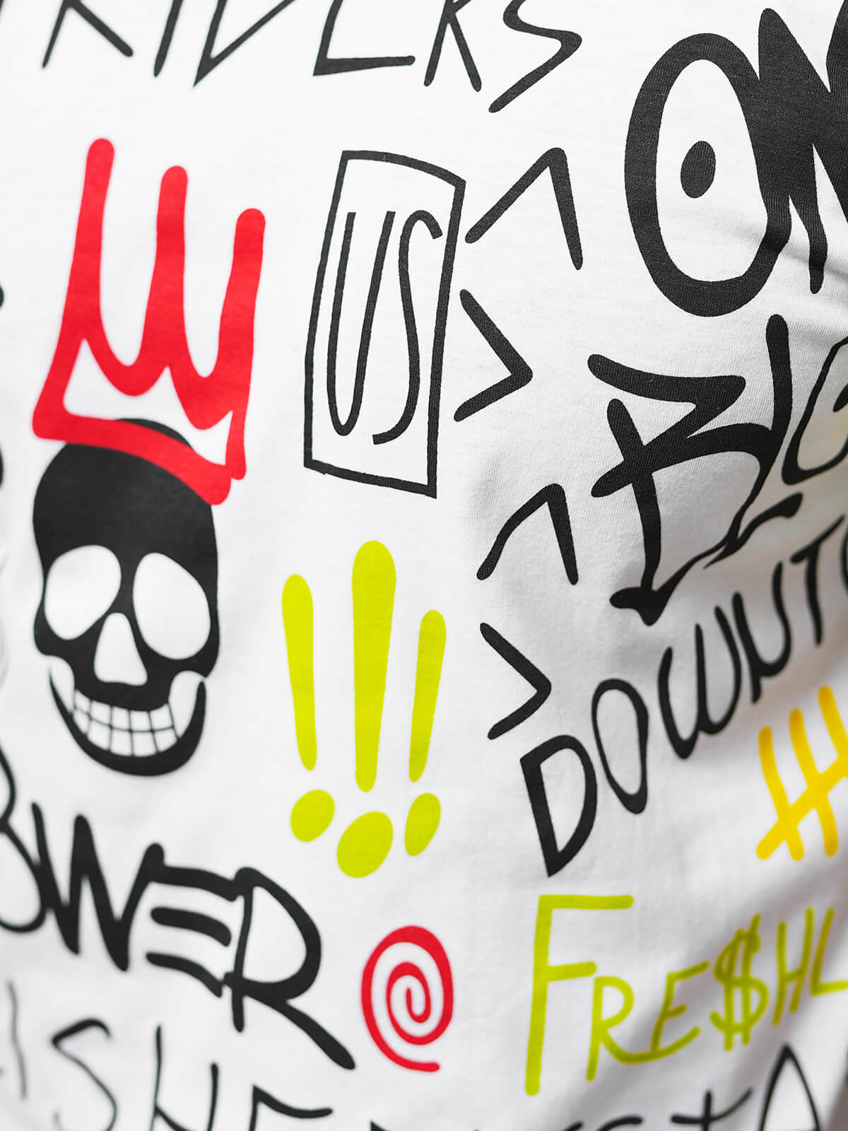 Das hier vorgestellte weiße OZONEE T-Shirt für Herren JS/8T1212/1 ist die perfekte Kombination aus Stil und Komfort. Dieses einzigartige Design aus der aktuellen Kollektion betont perfekt die männliche Silhouette und bietet gleichzeitig Komfort im Alltag. Es ist aus einem bequemen Strickstoff gefertigt, der sich sehr angenehm anfühlt und die Haut atmen lässt. Der modische Aufdruck auf der Vorder- und Rückseite verleiht dem T-Shirt zudem einen modernen und originellen Touch.