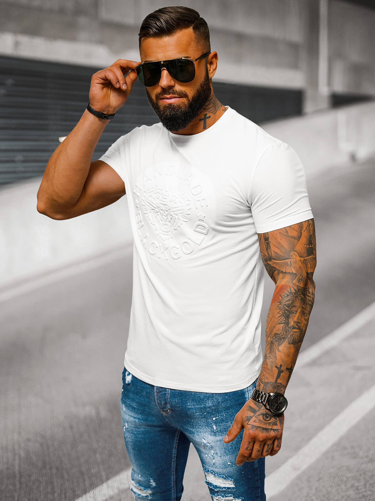 - Dieses Slim Fit T-Shirt aus komfortabler Baumwollmischung hat eine präzise Passform und eine geprägte Grafik auf der Vorderseite