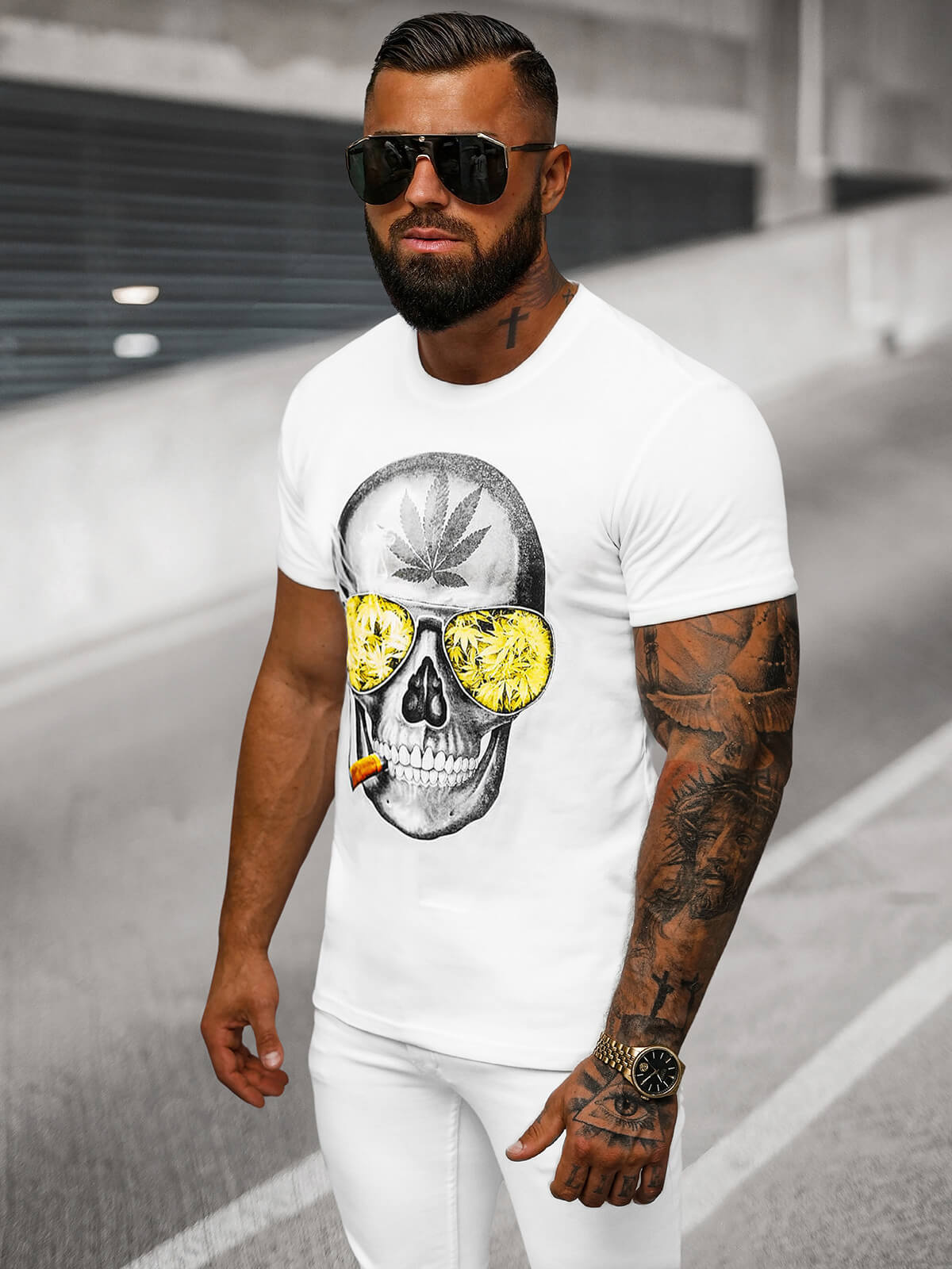 - Das T-Shirt hat einen auffälligen Druck auf der Vorderseite, der für einen modischen Look sorgt