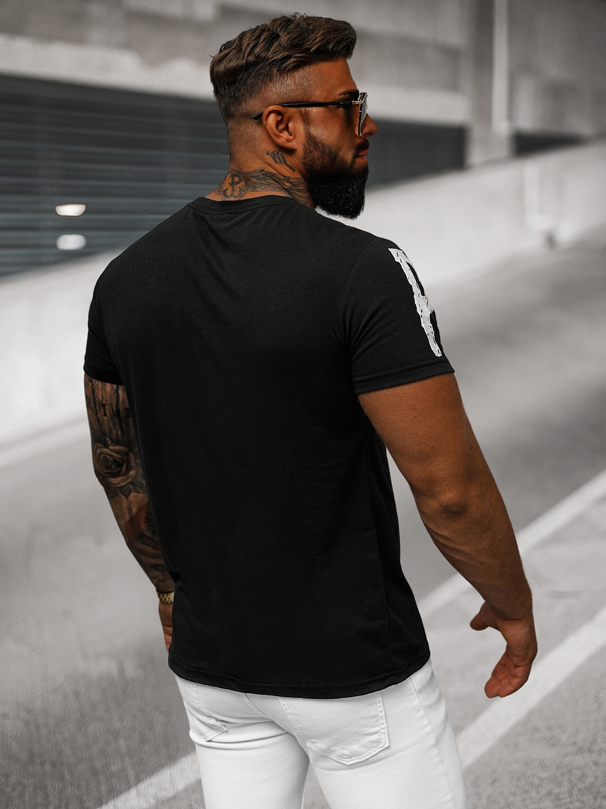 - Dieses modische T-Shirt aus Baumwollmischung hat einen Rundhalsausschnitt und beeindruckende Drucke auf der Vorderseite und den Ärmeln