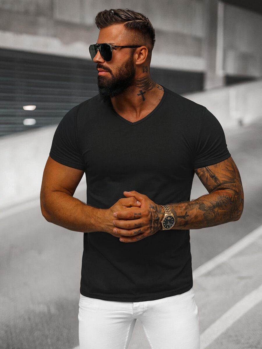 - Dieses Basic-T-Shirt aus Baumwollmischung hat einen V-Ausschnitt und bietet vielseitige Kombinationsmöglichkeiten
