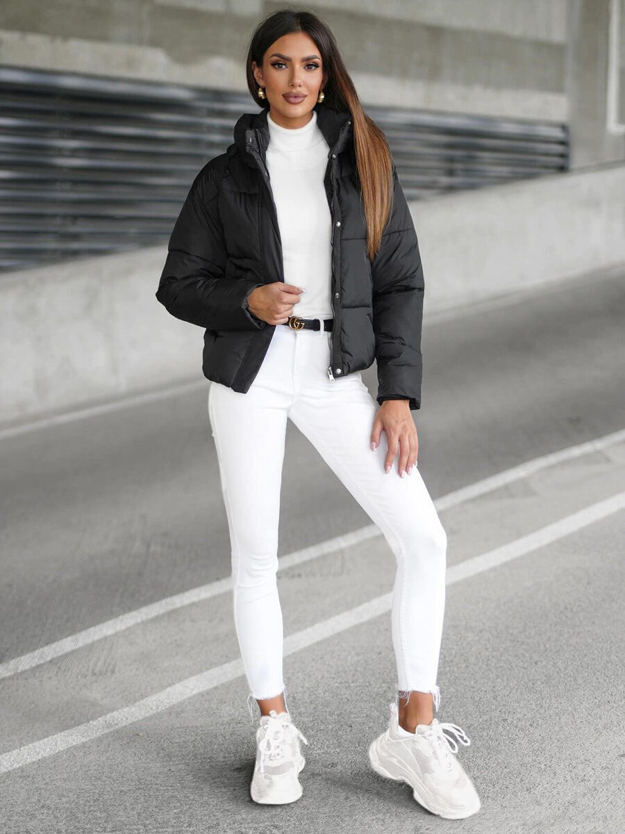 Die schwarze Steppwinterjacke von OZONEE für Damen ist die perfekte Wahl für kalte Wintertage. Sie können sie sowohl bei der Arbeit als auch bei Treffen mit Freunden tragen. Sie passt hervorragend zu Jeans, sieht aber auch zu einer eleganten Hose oder einem Kleid gut aus. Dank der seitlichen Taschen können Sie kleine Gegenstände sicher darin verstauen, und die Rippbündchen bieten zusätzlichen Schutz vor Kälte.