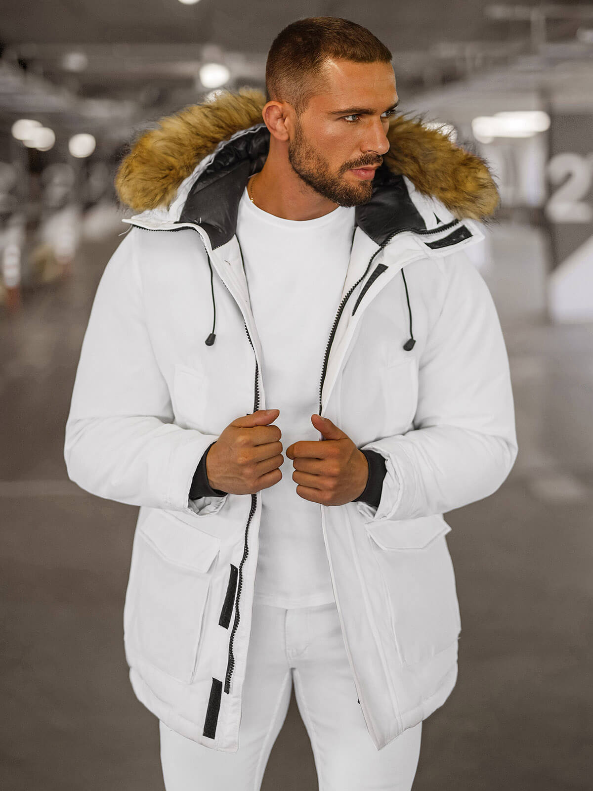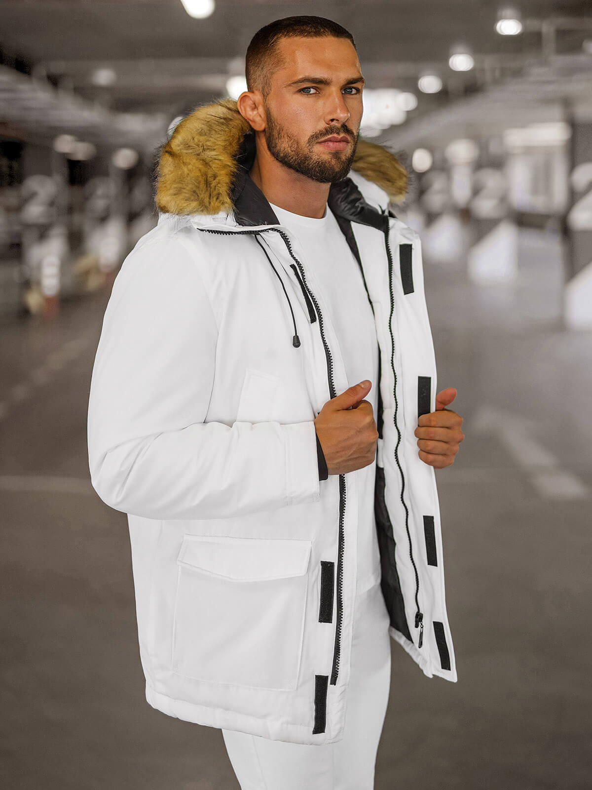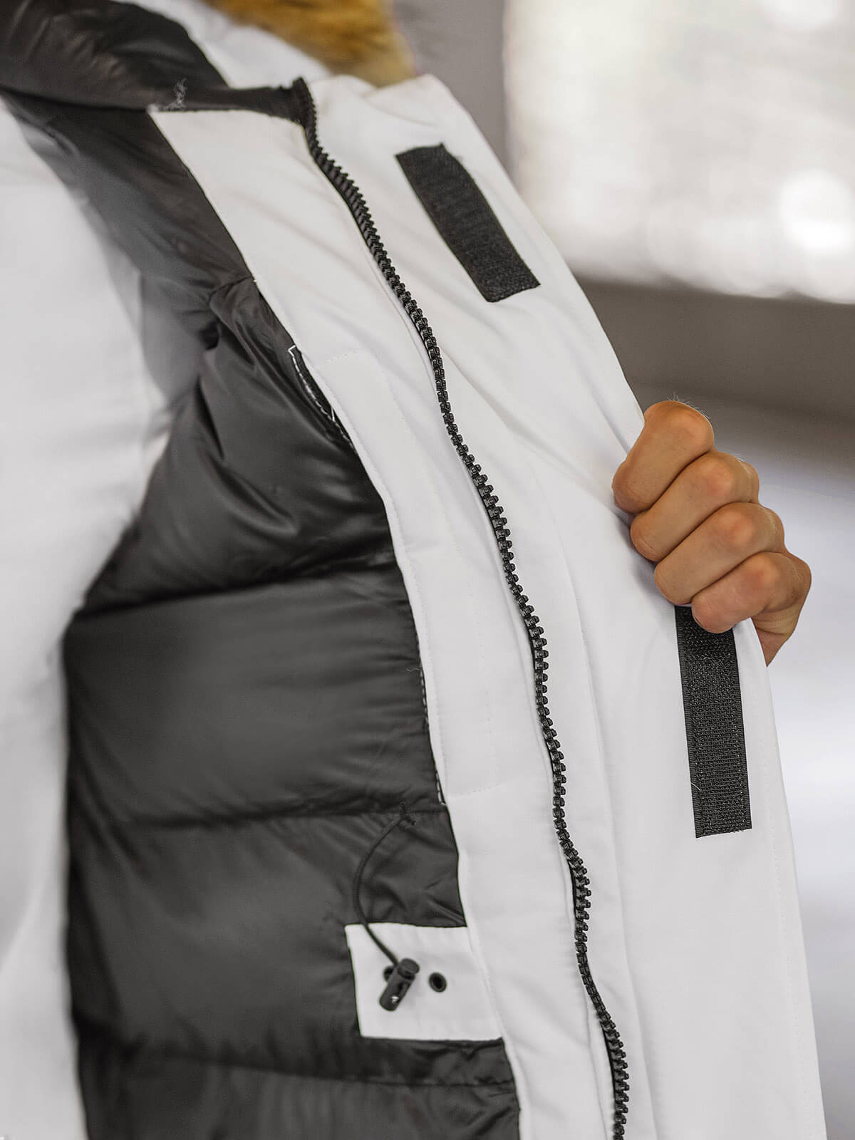 - Diese klassische Winterjacke verfügt über gerippte Bündchen an den Ärmeln und Taschen an den Seiten und vorne für eine perfekte Passform