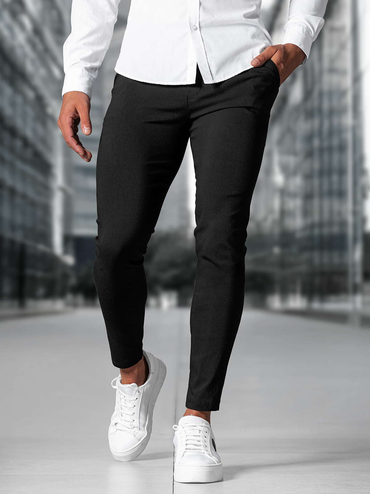 Herren Chino Hose Schwarz OZONEE O/P4049Z