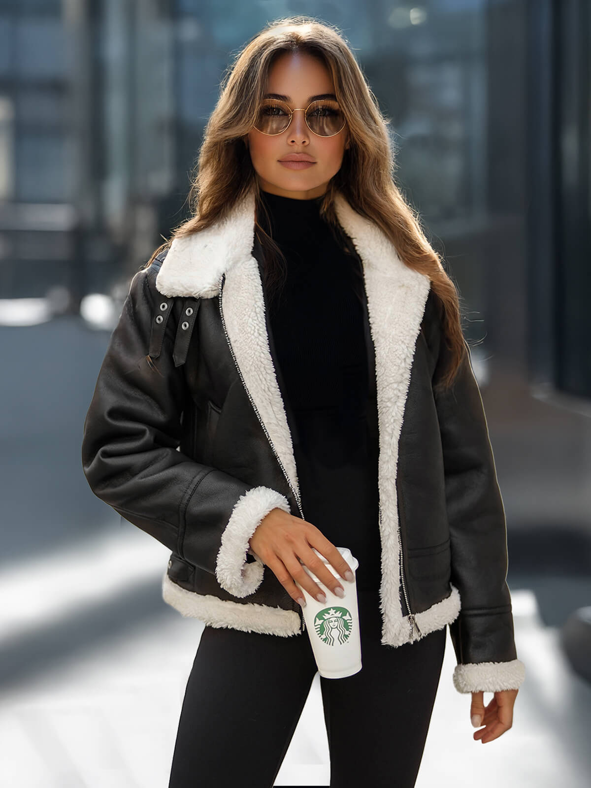 Beschreibung: Kreieren Sie Ihren eigenen Look mit dieser Kunstlederjacke und fühlen Sie sich in jeder Situation besonders gut und modisch. Egal ob als zusätzliche Schicht für den Weg zur Arbeit oder zur Ergänzung eines eleganten Outfits mit einer Stoffhose oder einem Rock, diese Jacke mit ihrem zeitlosen Schnitt ist ein vielseitiges Kleidungsstück in jedem Kleiderschrank.