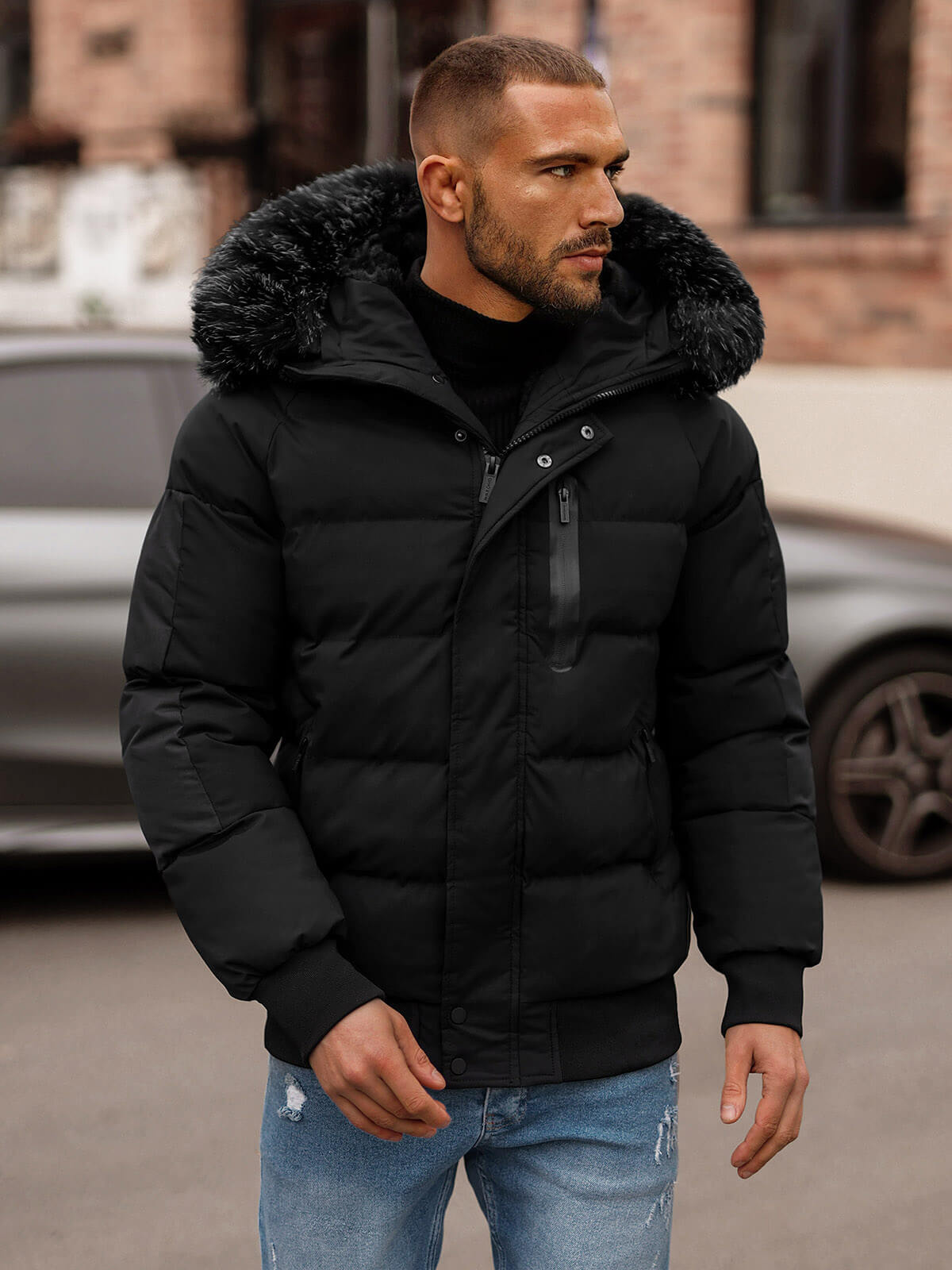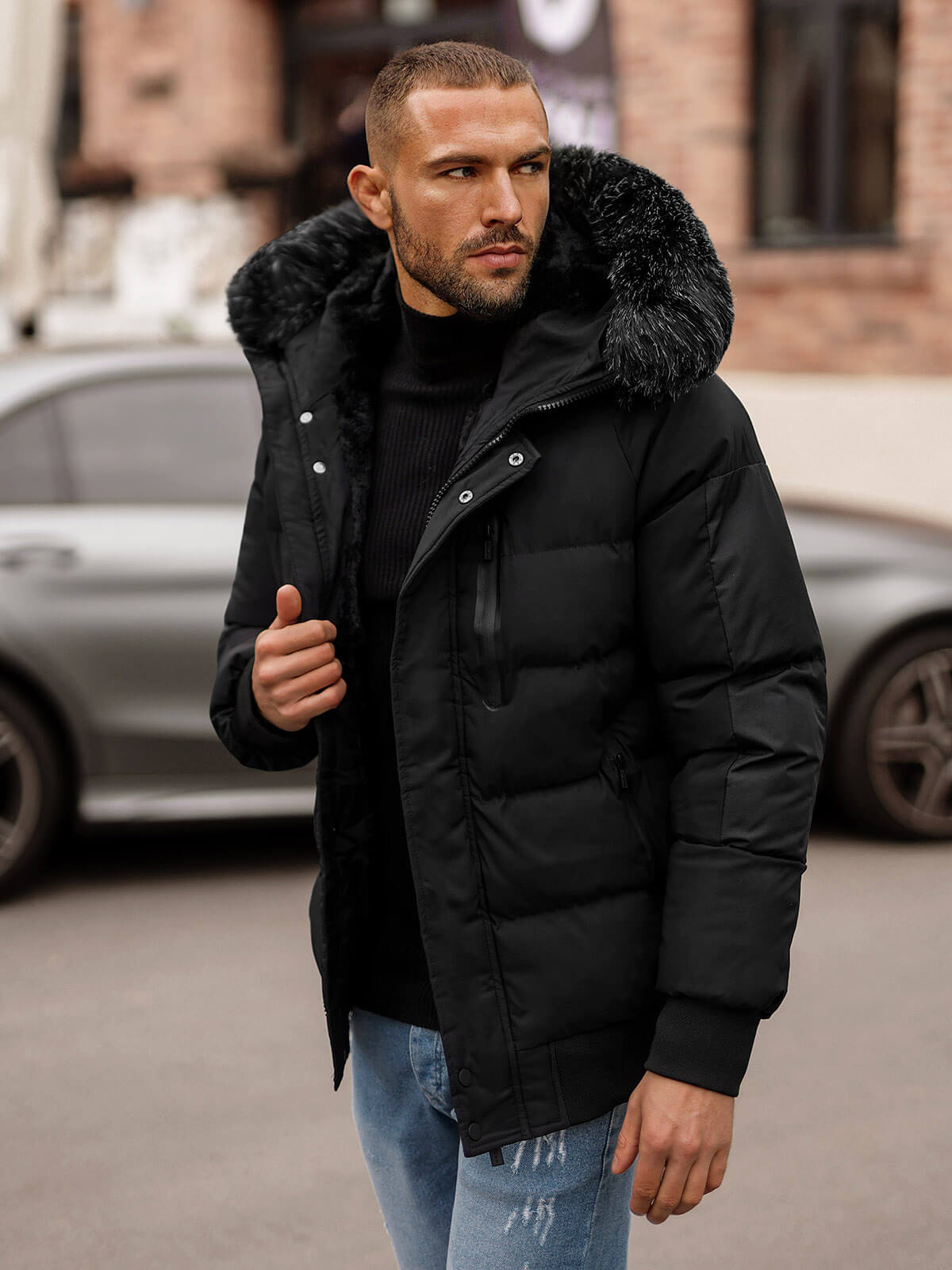 - Die Jacke verfügt über eine Kapuze mit abnehmbarem Fell, was für zusätzlichen Komfort und Stil sorgt