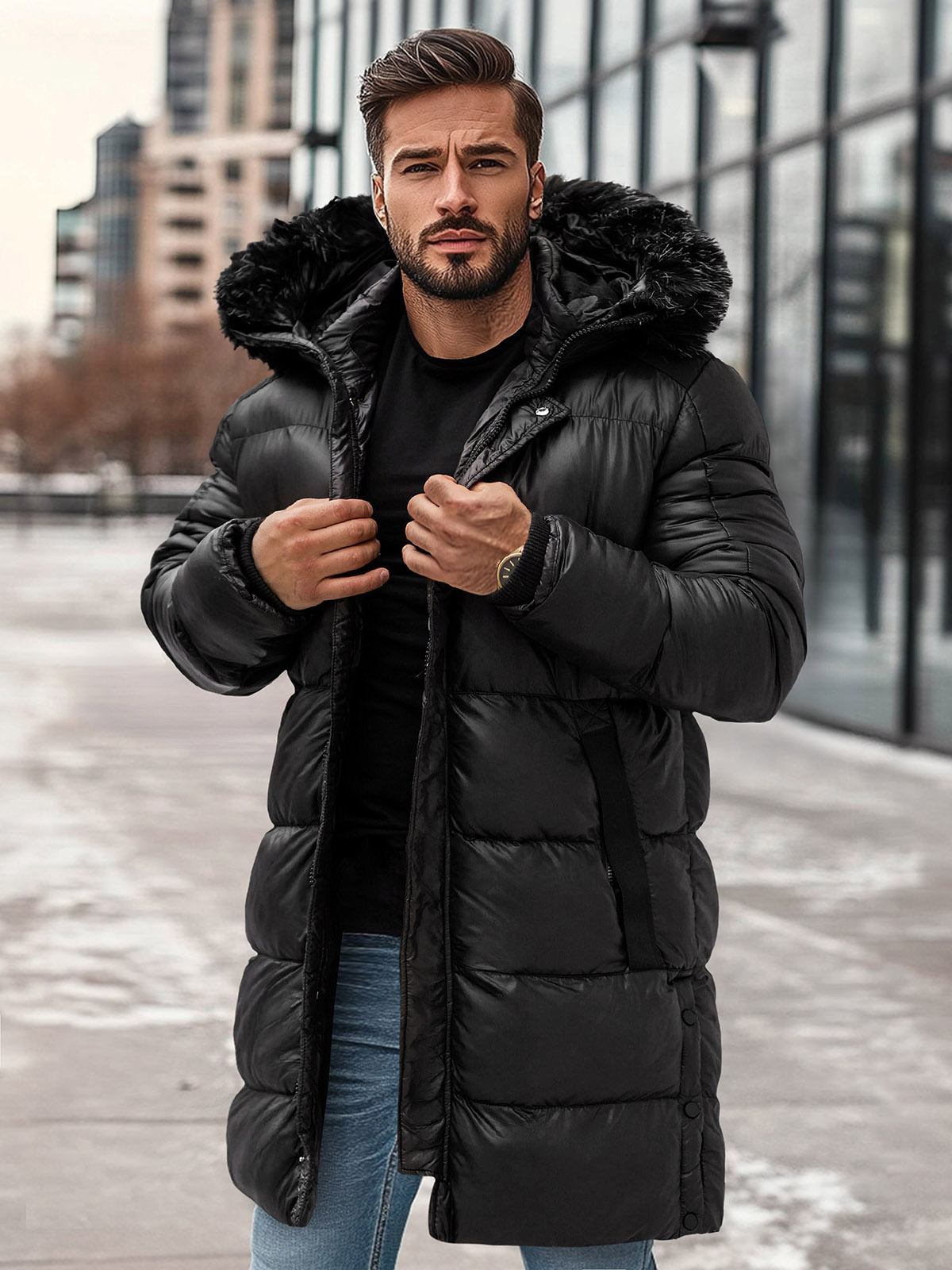 Die schwarze Herren-Winterjacke OZONEE O/M800Z ist eine ideale Wahl für den Alltag. Sie eignet sich sowohl für Spaziergänge als auch für Treffen mit Freunden. Sie lässt sich mit einer Vielzahl von Stilen kombinieren - von leger bis elegant. Sie passt gut zu Jeans, Chinos und auch zu Sporthosen. Dank der universellen Farbe und des klassischen Schnitts ist diese Jacke ein Must-Have für die Herrengarderobe.