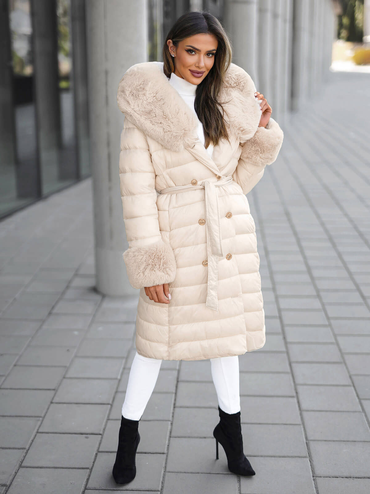 - Der Mantel verfügt über modische Steppungen und ein abnehmbares dekoratives Fell an den Ärmeln