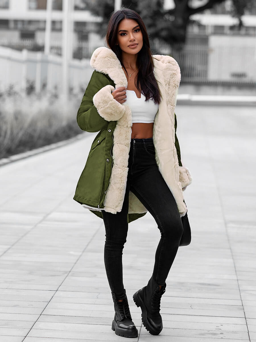- Die Jacke verfügt über abnehmbares Kunstfell an der Kapuze, am Reißverschluss und an den Ärmeln sowie Seitentaschen
