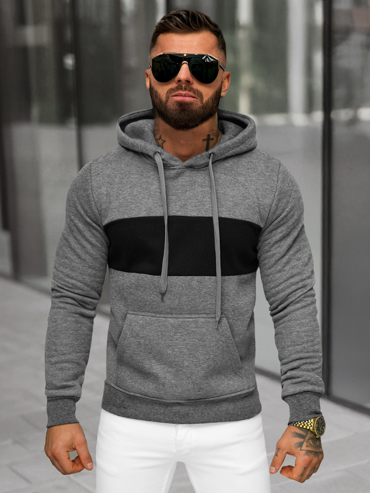 Herren Kapuzenpullover Anthrazit OZONEE JS/8B1308/5