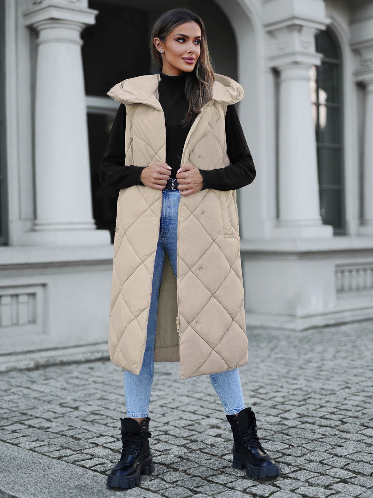 - Die Kapuze schützt vor Wind und Wetter, während die modischen Steppungen der Weste einen trendigen Look verleihen