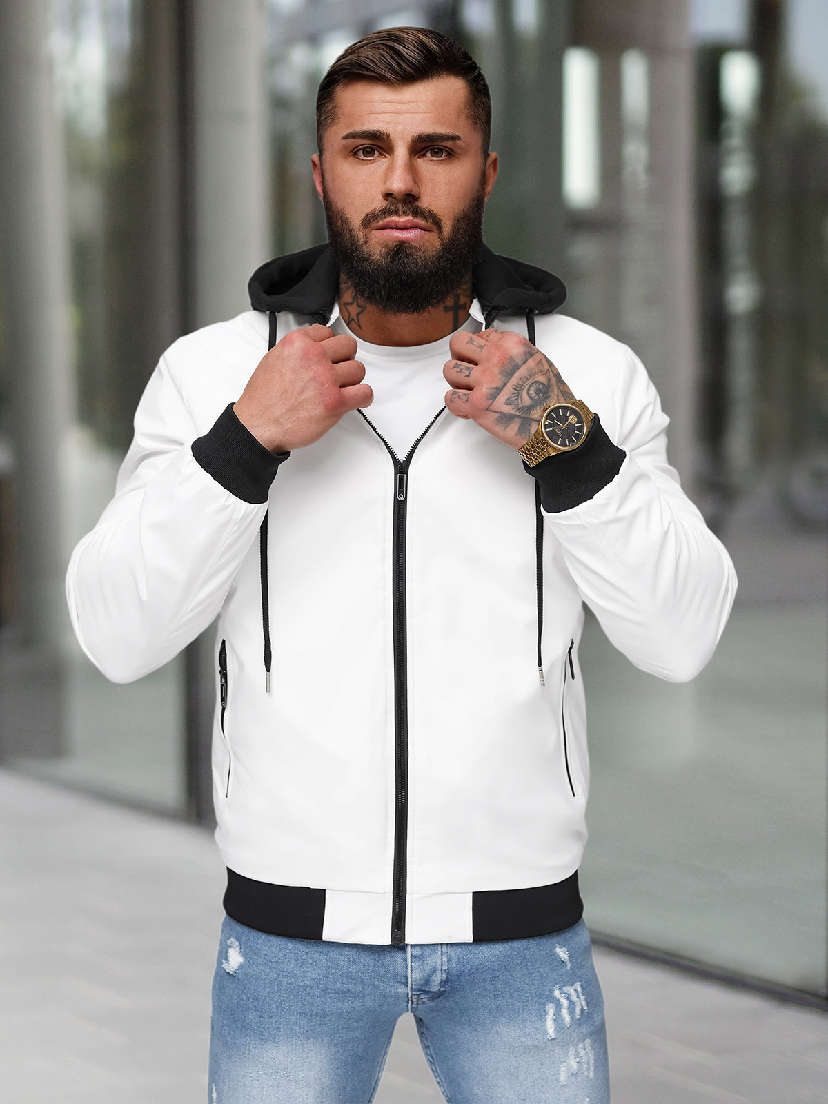 - Die abnehmbare Kapuze imitiert einen Hoodie und bietet zusätzliche Vielseitigkeit