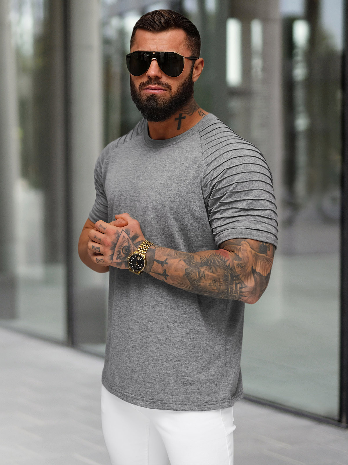 - Dieses stilvolle T-Shirt im Slim-Fit-Schnitt hat kurze Ärmel und auffällige Nähte an den Schultern, die dem Design einen besonderen Touch verleihen