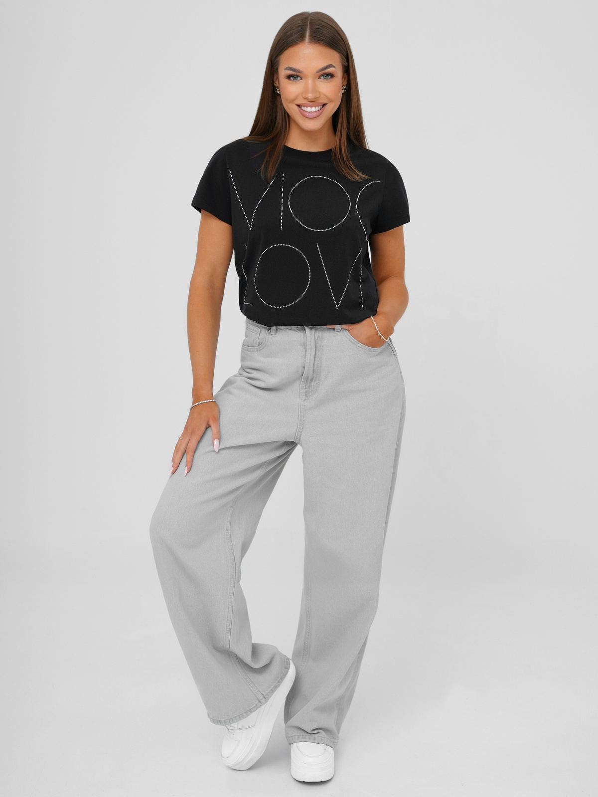 - Das Model (168 cm) trägt Größe S/M.