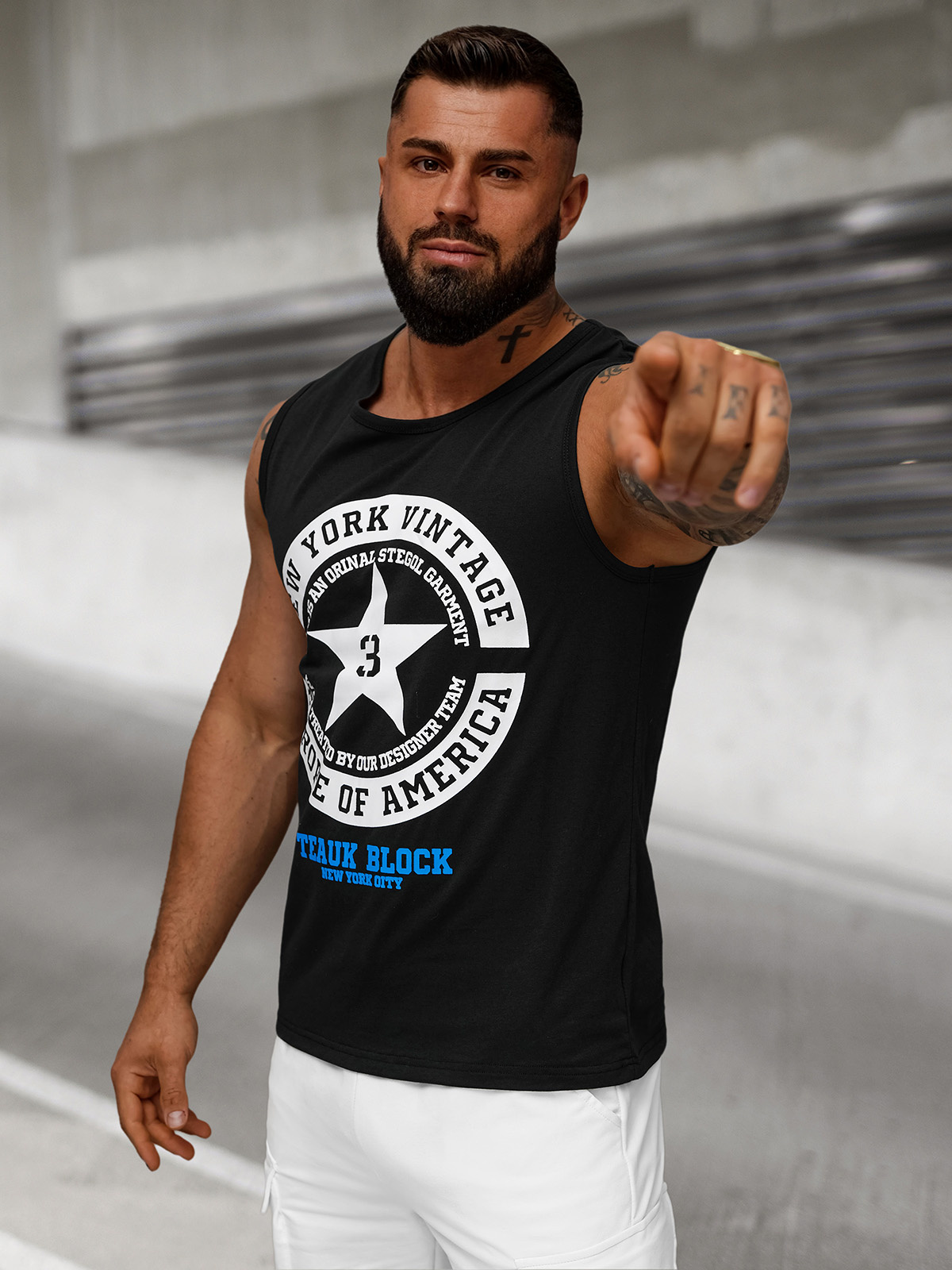 - Dieses modische Tanktop aus Baumwollmischung hat einen Rundhalsausschnitt und einen trendigen Aufdruck auf der Vorderseite, der jedem Outfit einen besonderen Akzent verleiht