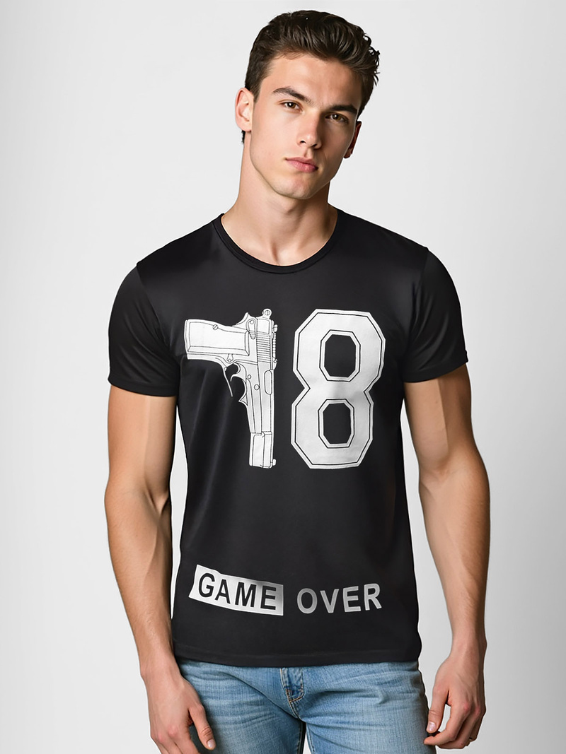 OZONEE Herren T-Shirt O/T123/3 mit U-Ausschnitt und Frontdruck