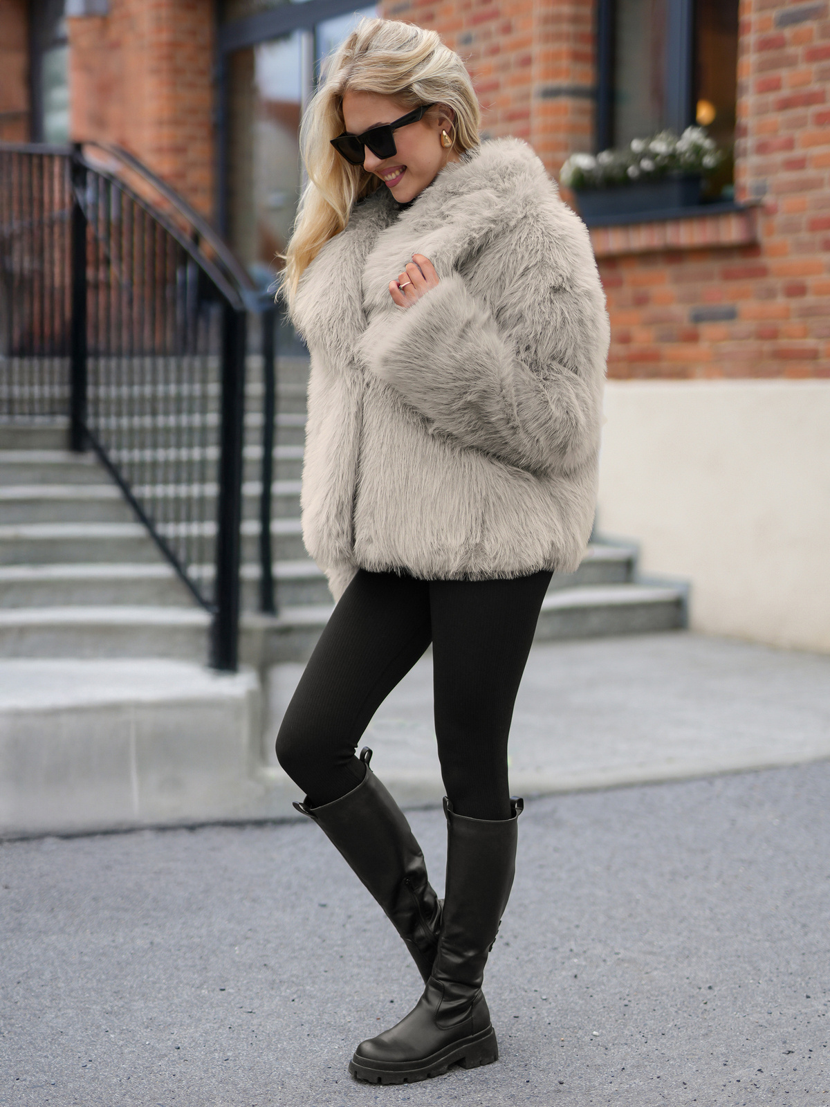 - Das Material imitiert Fell und sorgt für ein kuscheliges Tragegefühl