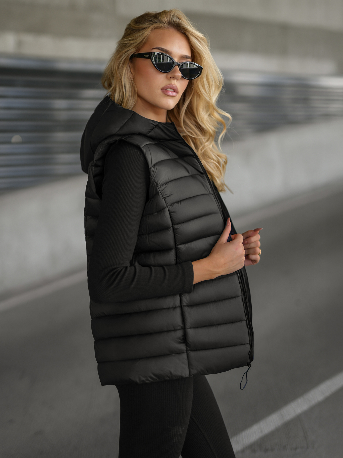- Diese stilvolle Weste mit Kapuze reicht bis zur Hüfte und ist mit einem Reißverschluss ausgestattet