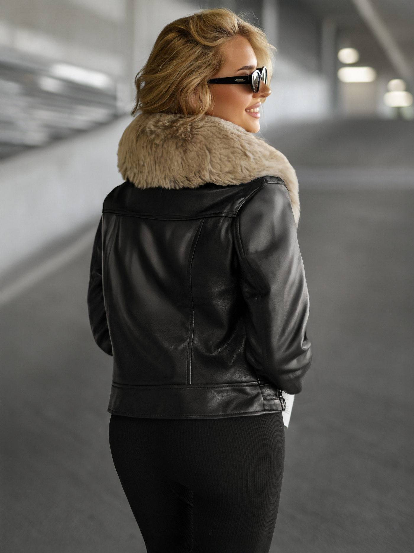 - Diese klassische Ramoneska aus lederähnlichem Material hat einen abnehmbaren Fellkragen und seitliche Reißverschlusstaschen für zusätzlichen Stil