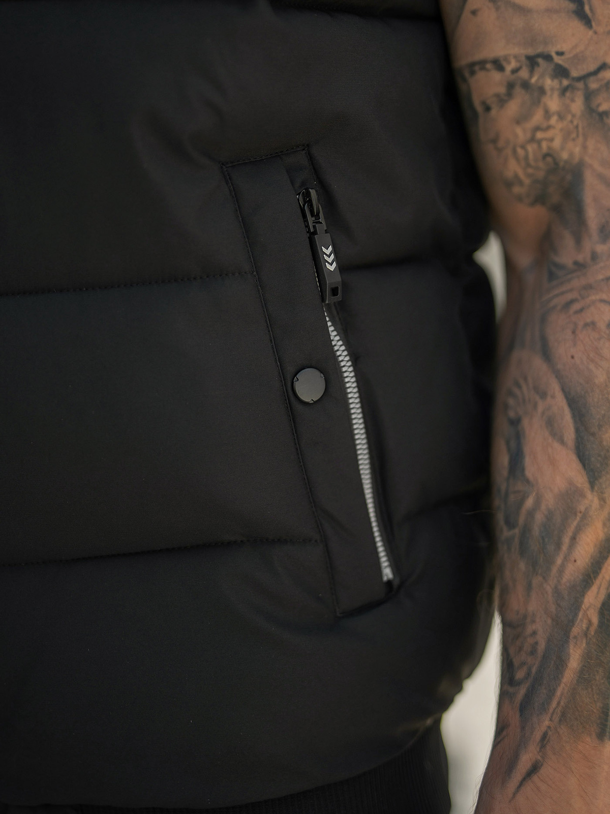 - Diese stilvolle Weste verfügt über modische Steppungen und einen hohen Kragen im Schornstein-Stil
