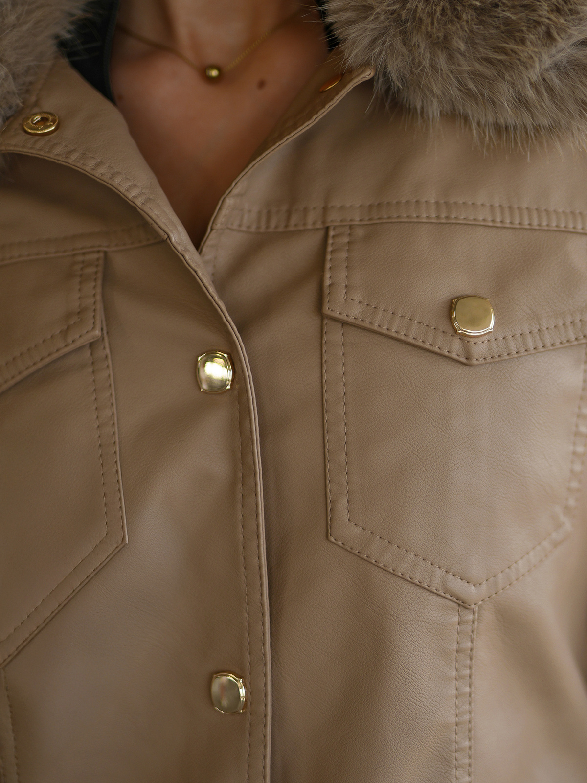 - Diese stilvolle Jacke aus Kunstleder hat einen abnehmbaren Kunstfellkragen und abnehmbares Kunstfell an den Ärmeln für vielseitige Looks