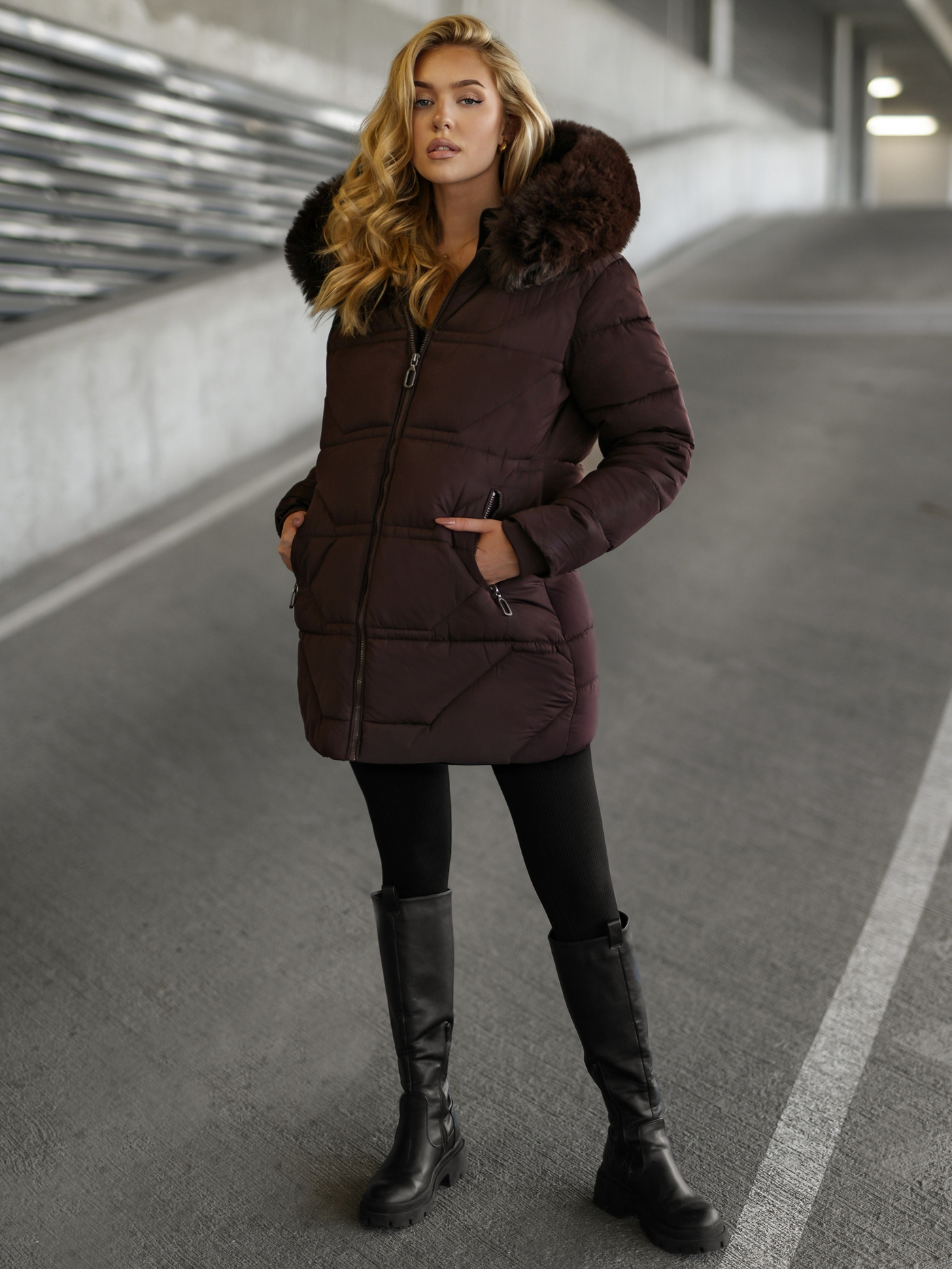 OZONEE Damen Winterjacke JS/5M3331/158 mit abnehmbarem Kunstfellkapuze