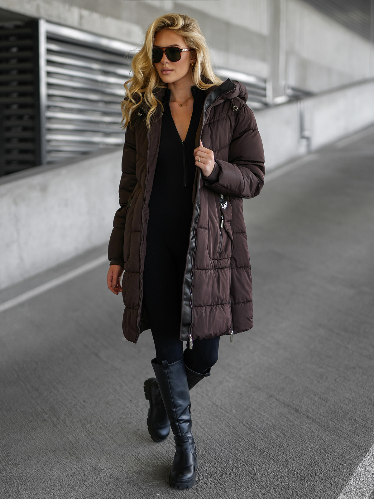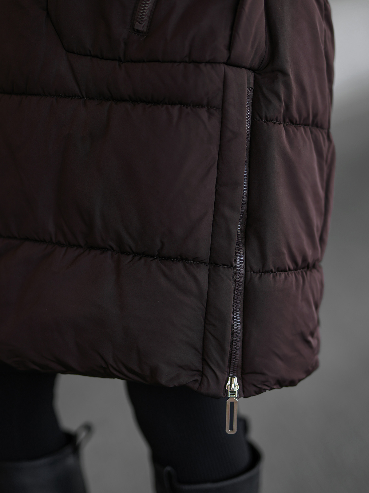 - Modische Steppungen und ein hoher Kragen im Schornstein-Stil bieten zusätzlichen Schutz vor Kälte