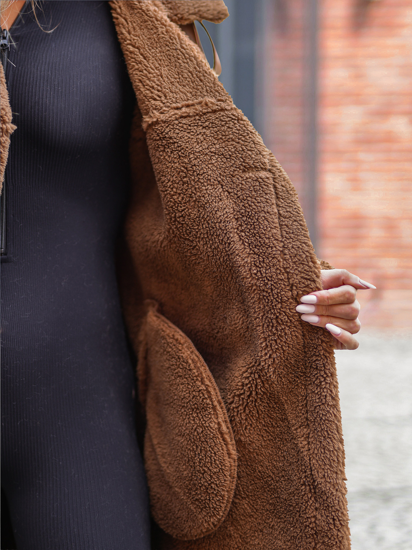 - Der Mantel ist mit einem warmen Futter ausgestattet, das für angenehme Wärme sorgt