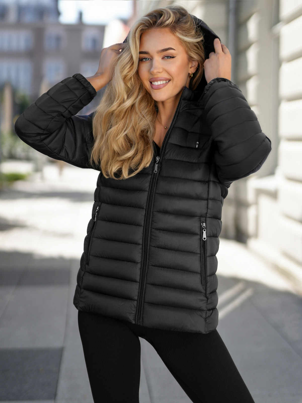 - Der hohe Kragen im Schornstein-Stil und die modischen Steppnähte verleihen der Jacke einen stilvollen Look