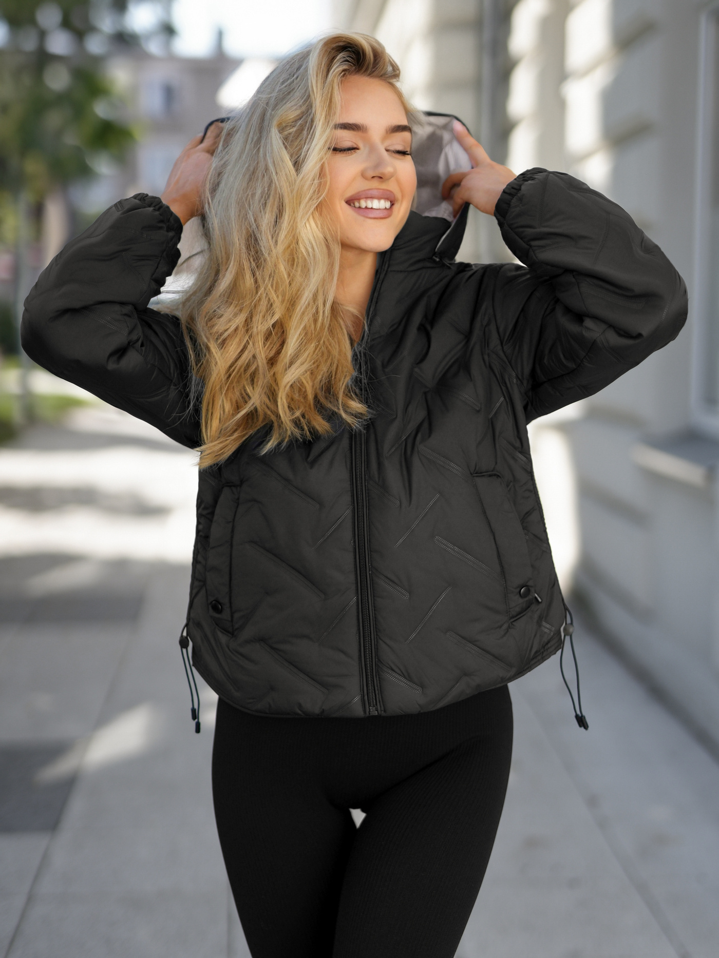 - Diese modische, gesteppte Jacke reicht bis zur Hüfte und hat seitliche Reißverschlusstaschen für zusätzlichen Komfort
