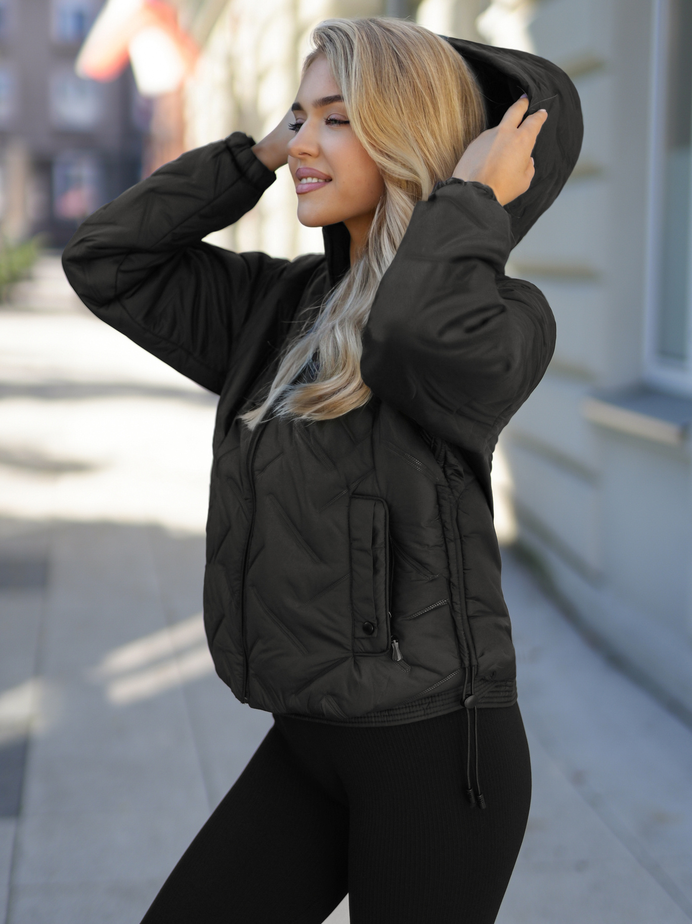 - Diese modische, gesteppte Jacke reicht bis zur Hüfte und hat seitliche Reißverschlusstaschen für zusätzlichen Komfort