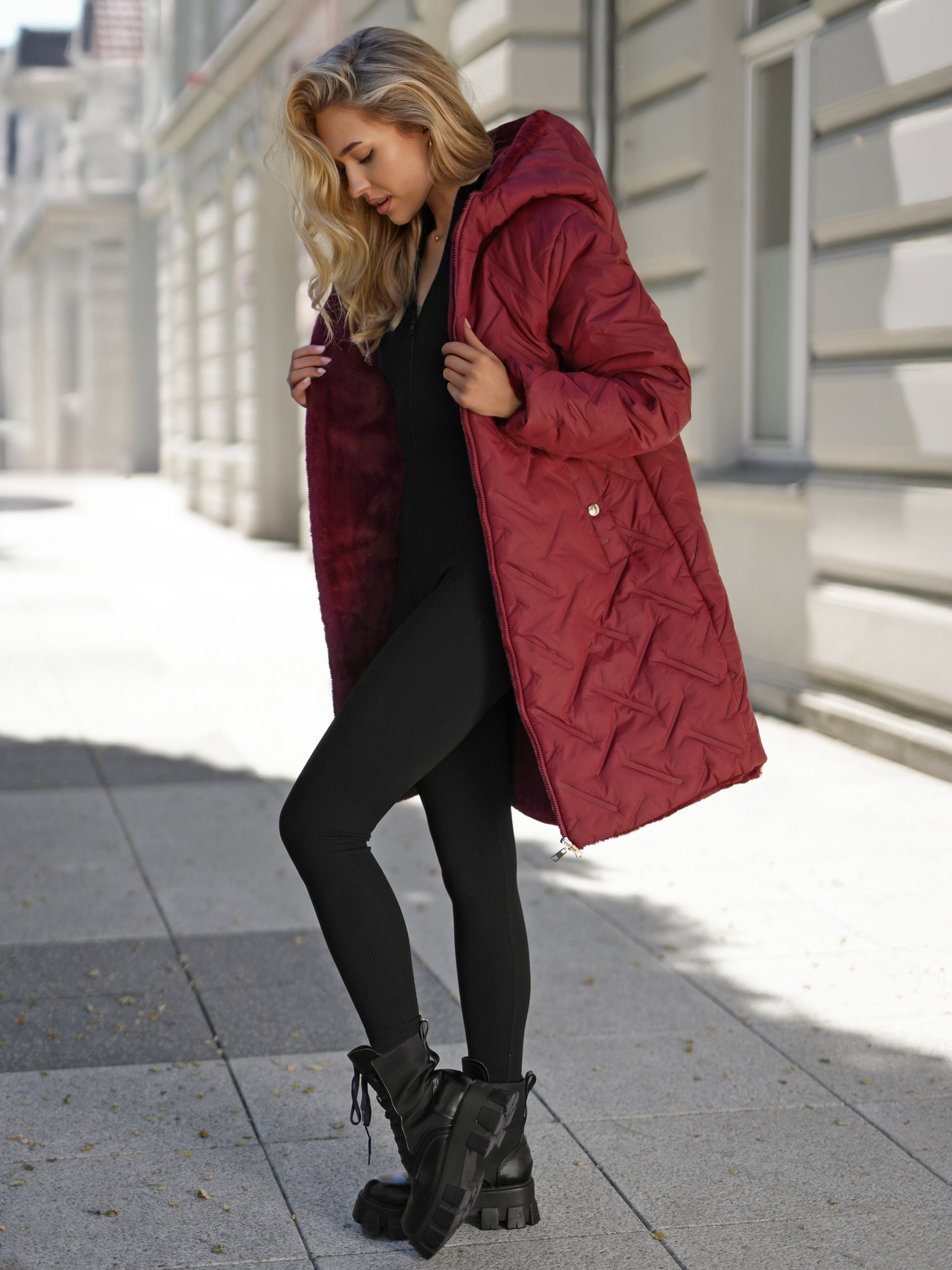 - Diese stilvolle Winterjacke mit Reißverschluss ist innen mit kuscheligem Fell gefüttert und hat modische Steppungen