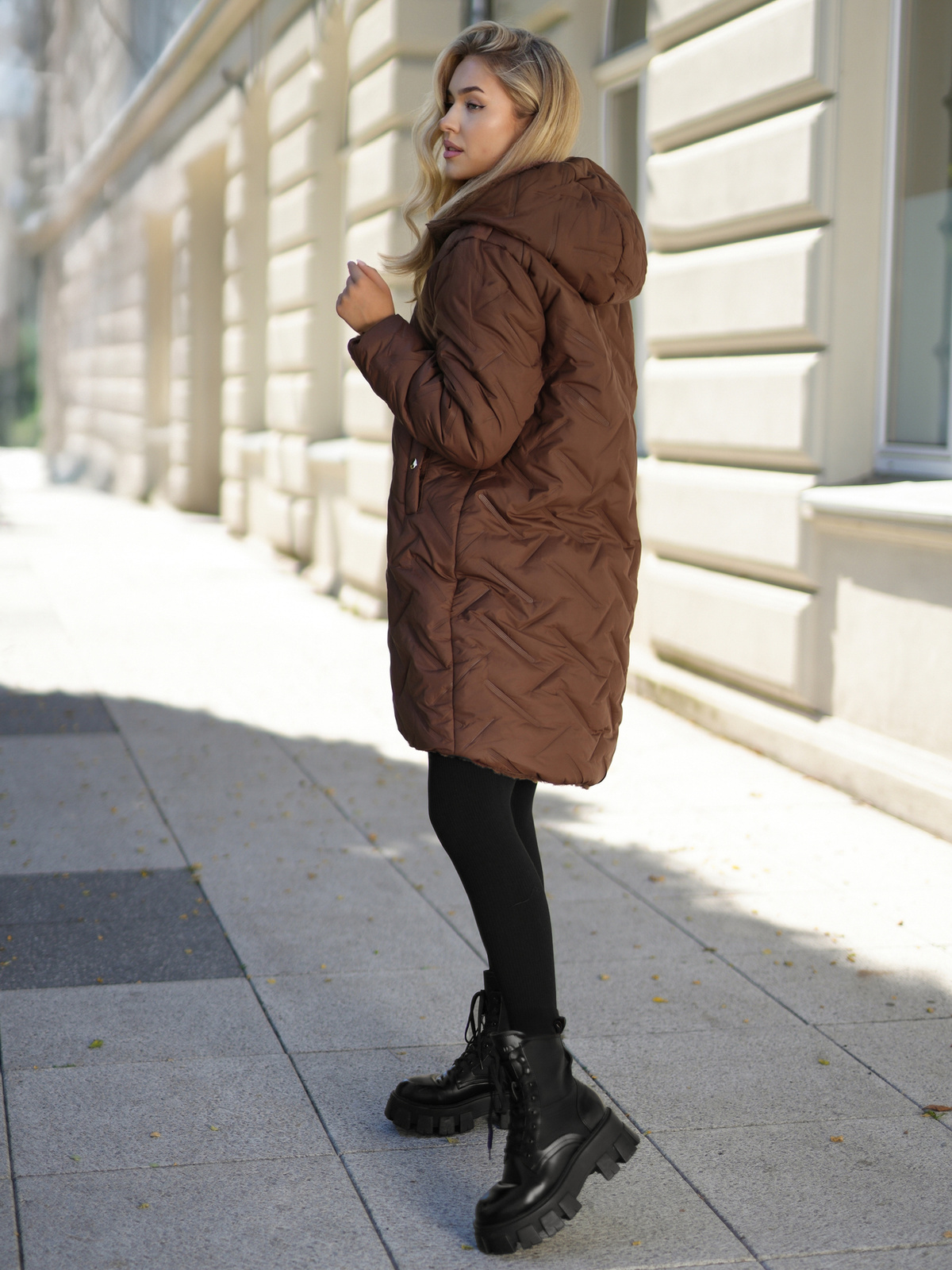 - Der Reißverschluss sorgt für einfaches An- und Ausziehen, während modische Steppungen und seitliche Taschen mit Druckknöpfen für zusätzlichen Stil und Funktionalität sorgen