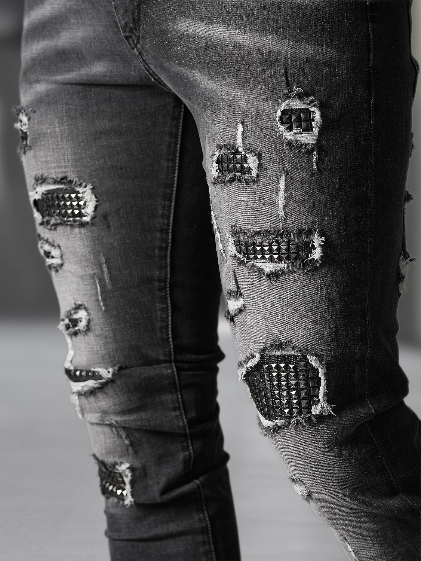 - Diese modischen Jeans im Slim Fit Stil verfügen über Knopfverschluss, trendige Used-Effekte und dekorative Nieten