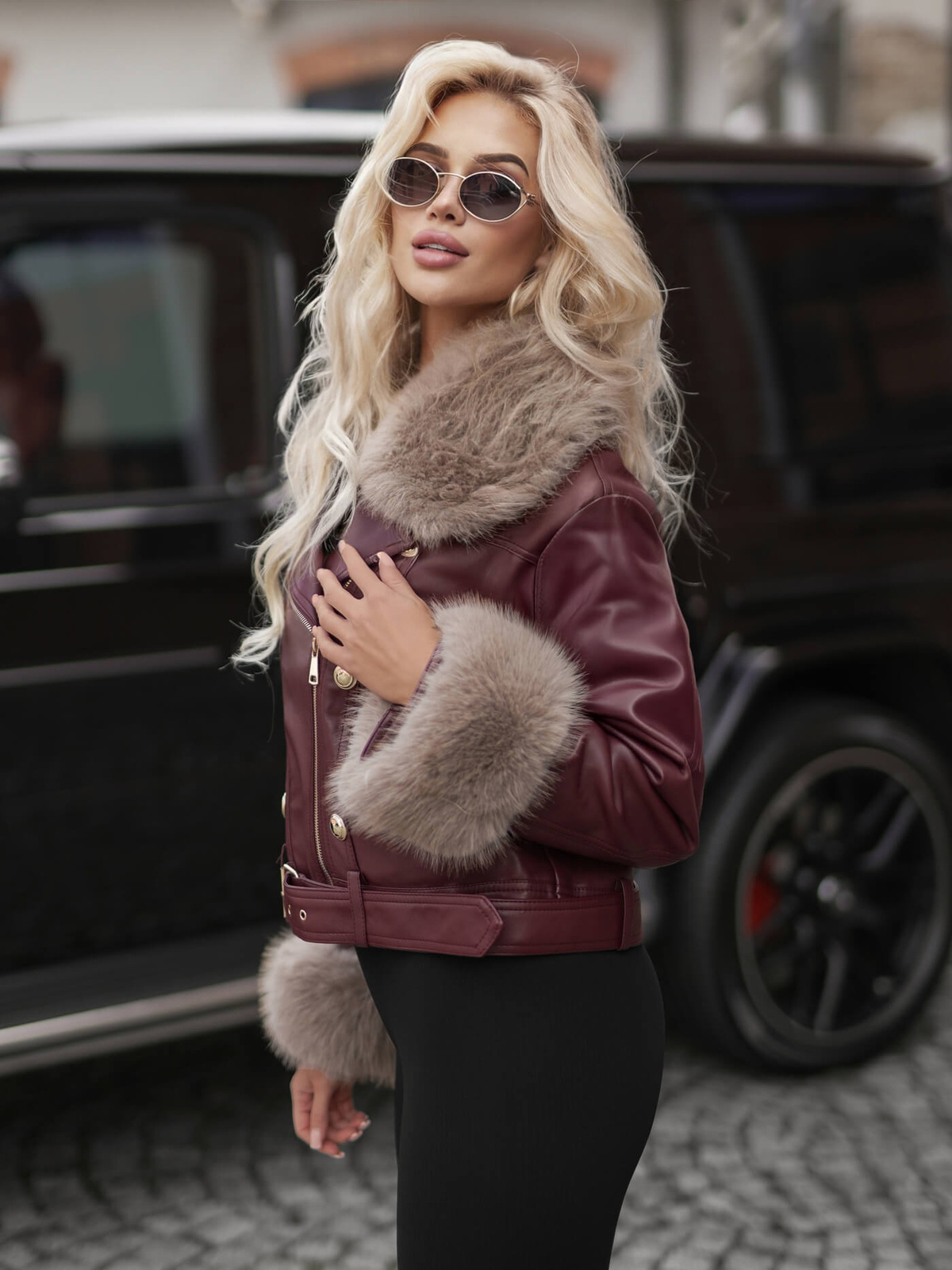 - Diese klassische Bikerjacke aus Material, das Leder imitiert, hat einen abnehmbaren Kunstfellkragen und seitliche Taschen für eine perfekte Kombination aus Stil und Funktionalität